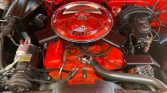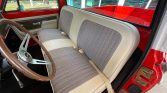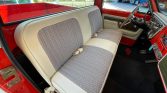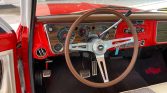 The interior has been completely restored with new upholstery, door panels, headliner, and weather stripping. The dash has been beautifully restored with new gauges and chrome hardware. Additional interior features include factory air conditioning, a pushbutton radio, and a wood steering wheel.