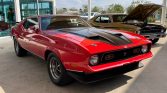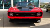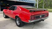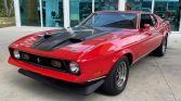 The 1972 Ford Mustang Mach 1 Fastback stands out with its powerful performance and striking appearance. Under the hood, it boasts a formidable 429 cubic inch engine, equipped with a blue painted air cleaner system, finned aluminum valve covers, aluminum intake and heads, and a 4-barrel carburetor. The engine is paired with performance exhausts, enhancing both power and sound. It rides on Ford factory styled chrome wheels with black sidewall performance tires, ensuring a robust stance and handling.